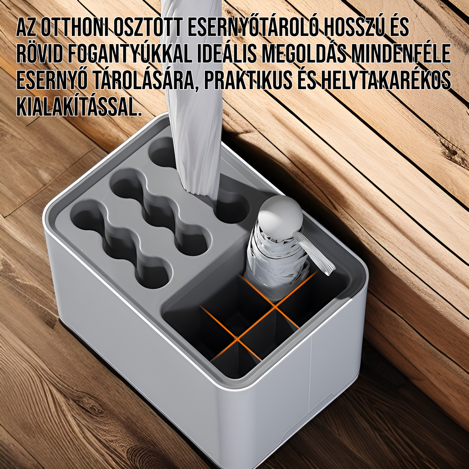 Otthoni osztott esernyőtároló hosszú és rövid fogantyúkkal a vízelvezetéshez